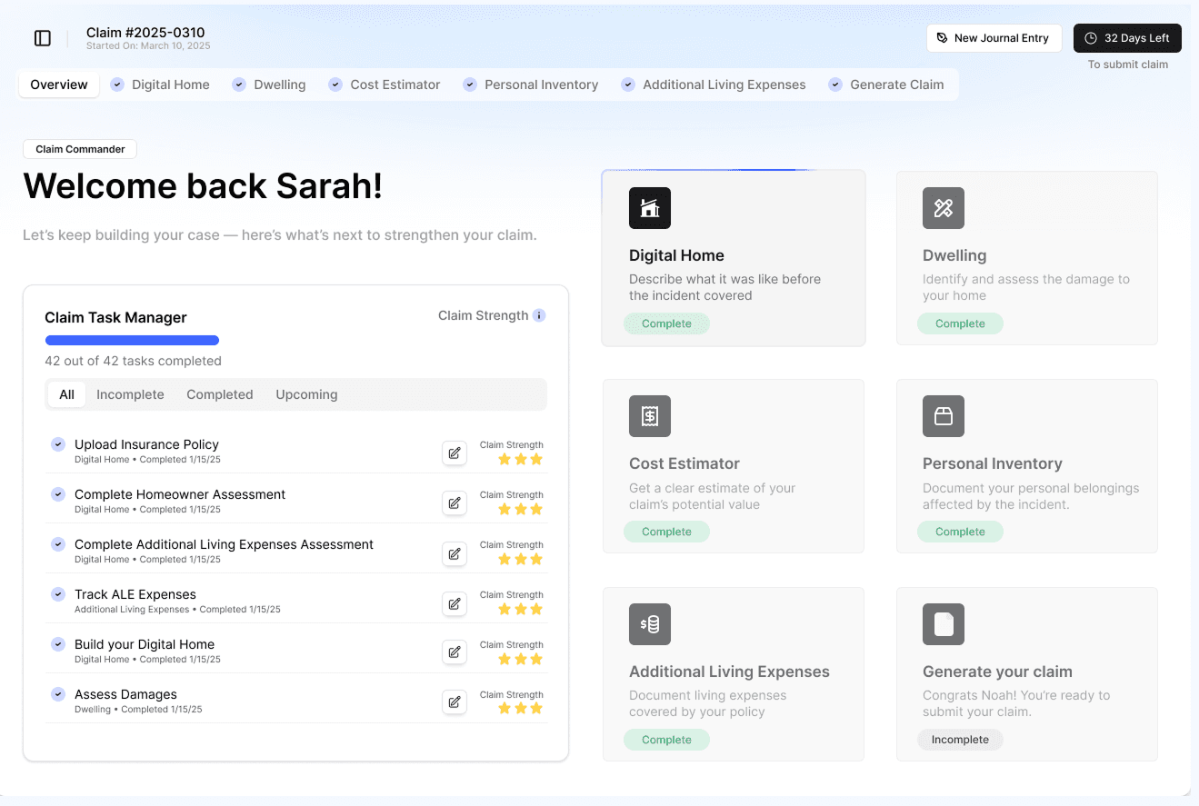 Our AI assistant guides you through every step — from interpreting your policy to maximizing your payout.